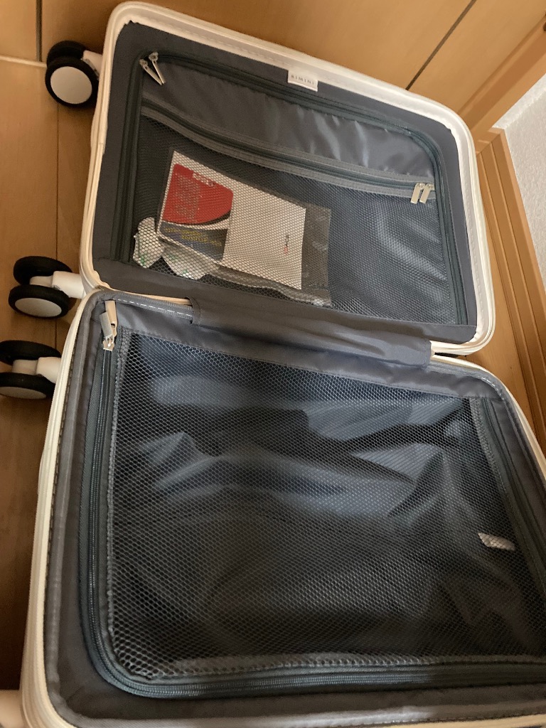 - 思っていたよりすこし大きめでした。2025/01/21耐久性:普通重量感:普通思っていたよりすこし大きいサイズでしたので、機内持ち込みで天井収納には力がいるかも。 4輪キャスターも軽く動き、ハンドルを伸ばしてもしっかりとしていました。 真ん中に、容量が増えたとき用のスペースもあり、荷物が多くなっても安心です。
